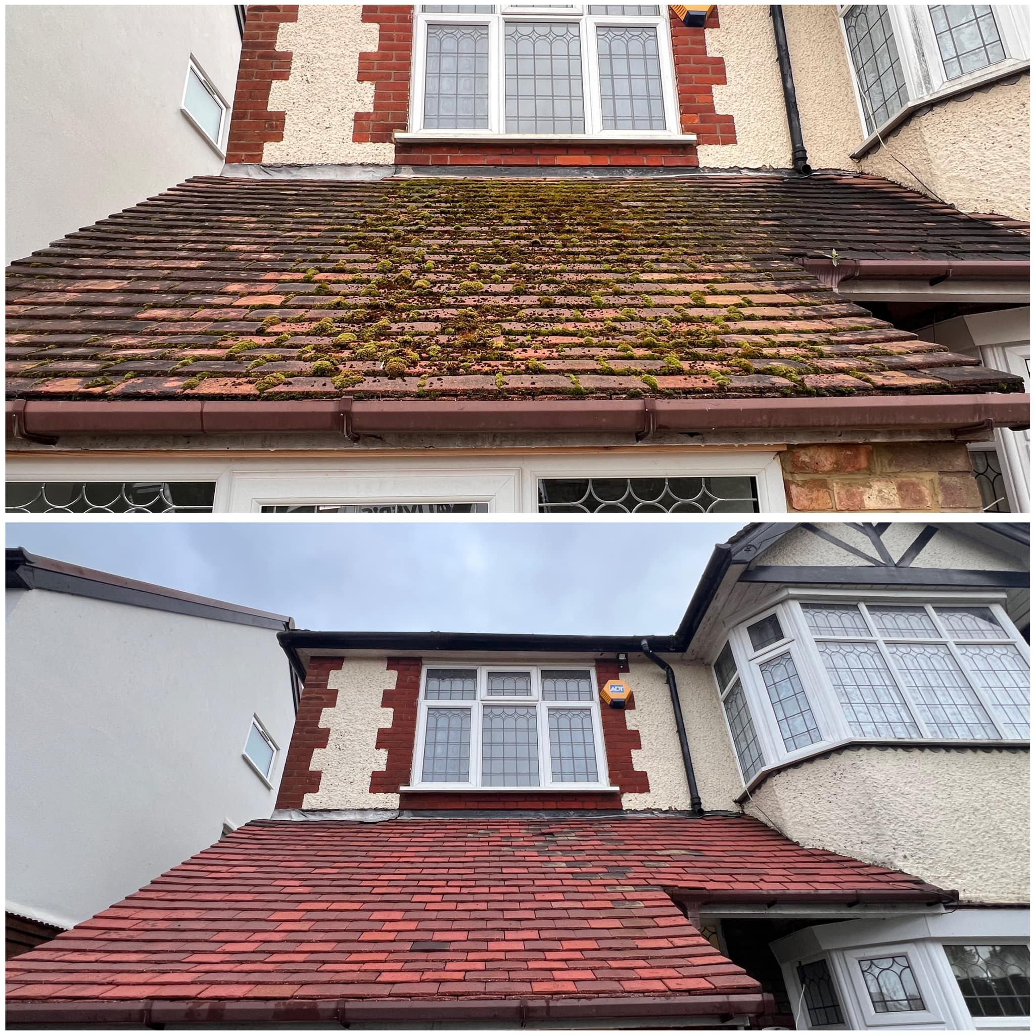Moss doesn’t just affect how your roof looks, it can trap moisture and shorten its lifespan. This transformation shows the difference expert roof cleaning makes, both visually and structurally.